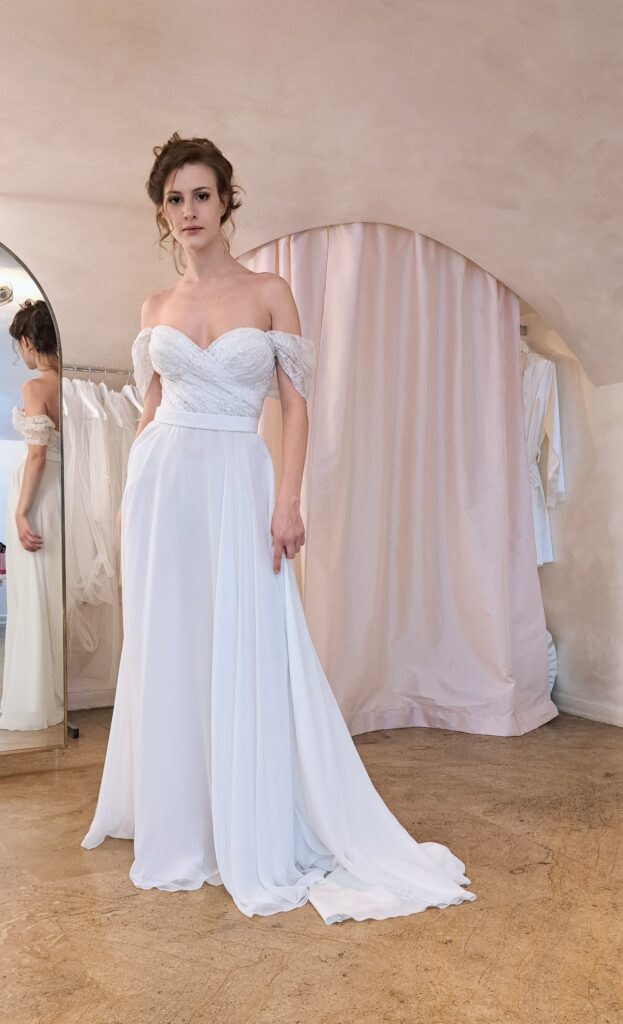 È l’abito perfetto per la sposa che vuole sentirsi libera, femminile e connessa alla natura nel giorno delle nozze.